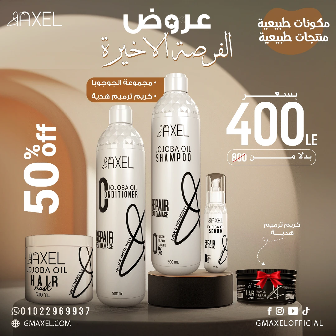 دلّلي شعرك بتجربة فاخرة من العناية والتغذية مع مجموعة اكسل بزيت الجوجوبا