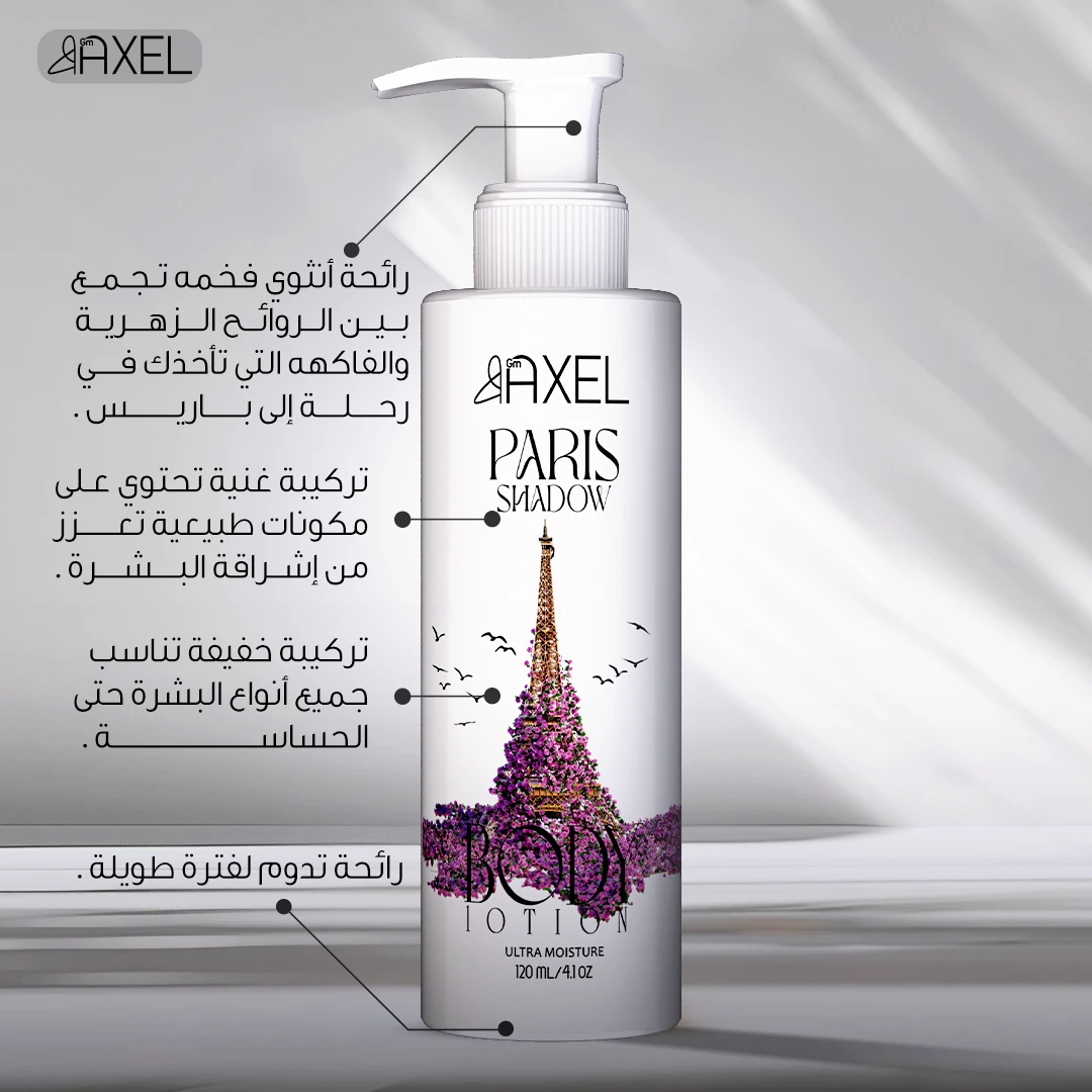 "تجربة باريس شادو بودي ميست الساحر، وهو عطر يجسد جوهر الرومانسية والأناقة. هذا الرذاذ المنعش ليس مجرد عطر، بل هو تجربة حقيقية تترك أثراً جميلاً على بشرتك. مصمم لتعطير وترطيب الجسم، يوفر إحساسًا دائمًا بالانتعاش بينما يكافح رائحة الجسم بفعالية. بفضل مزيجه الفريد من المكونات الطبيعية، يضمن هذا البودي ميست أن تبقي رائحتك جميلة طوال اليوم، سواء كنتِ في مناسبة خاصة أو ضمن روتينك اليومي. يتم تدليك البودي ميست بلطف على جميع أجزاء الجسم، خاصة على نقاط النبض، مما يزيد من فعالية العطر ويعزز استمتاعك به.
