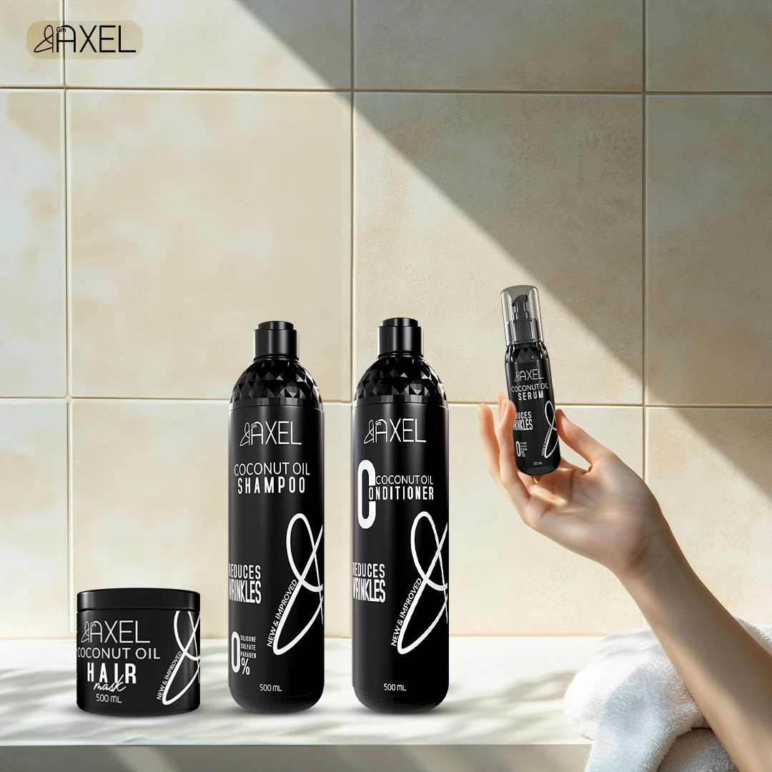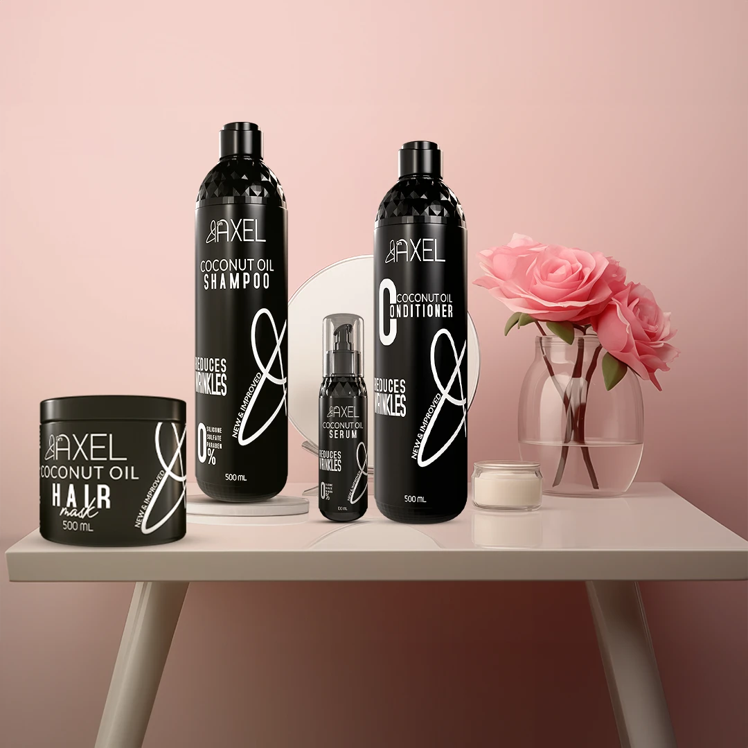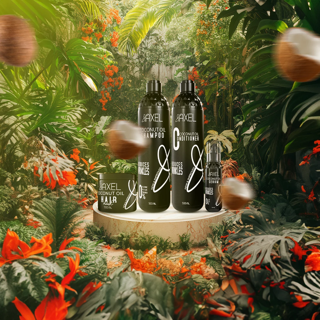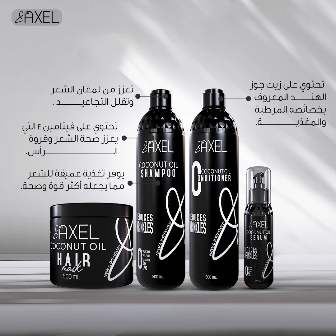 استمتع بتجربة عناية فريدة مع مجموعة جوز الهند من أكسل واحصل على شعر صحي، قوي ولامع بشكل طبيعي!