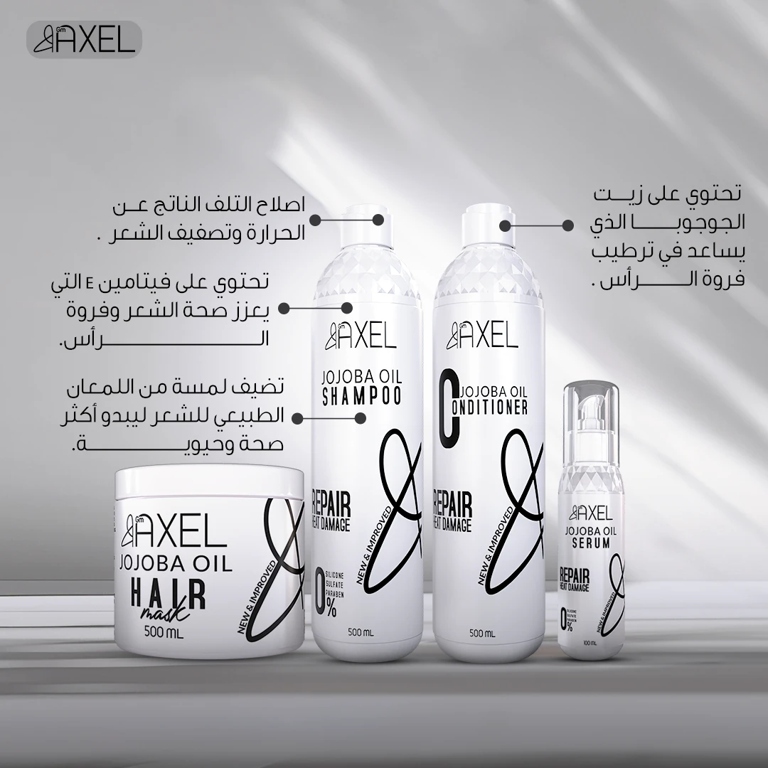 دلّلي شعرك بتجربة فاخرة من العناية والتغذية مع مجموعة اكسل بزيت الجوجوبا