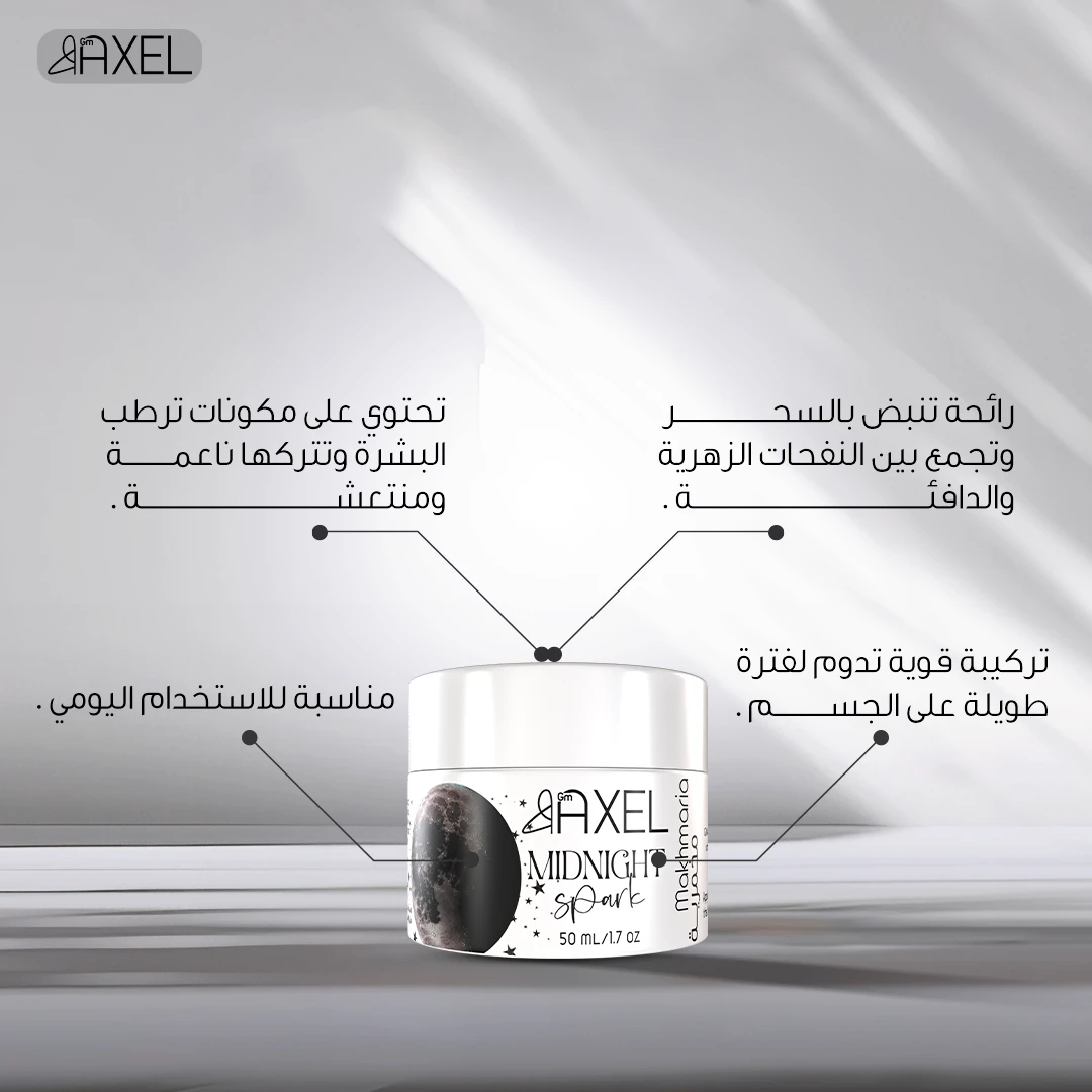 مخمرية ميدنايت تمنح الجسم رائحة ليلية فاخرة بعد الاستحمام، مع ترطيب يدوم ويترك البشرة ناعمة ومعطرة.