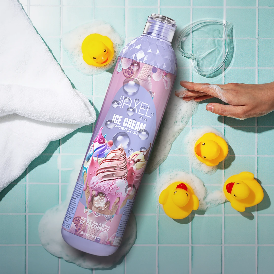 شاور جل برائحة ايس كريم جوزة الهند يوفر تجربة استحمام منعشة برائحة استوائية مع تنظيف عميق للبشرة وترطيبها. يحافظ على توازن الماء في الجلد بفضل تركيبته الغنية بالمكونات الطبيعية.